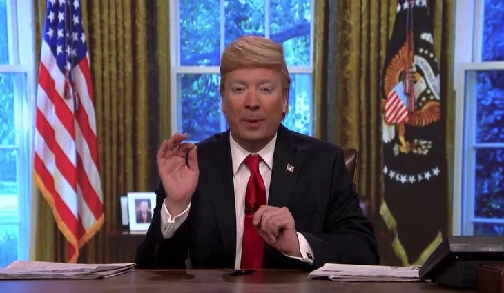 El presentador de 'The Tonight Show' parodia al presidente de Estados Unidos y desvela cómo es su ruleta de las decisiones.