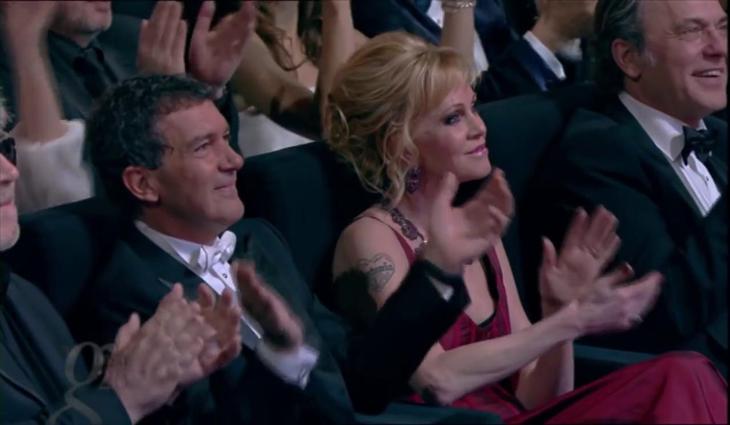 Los actores Javier Gutiérrez, El Langui, Antonio Resines, entre otros, cantan un rap durante la gala de premios de los Goya.