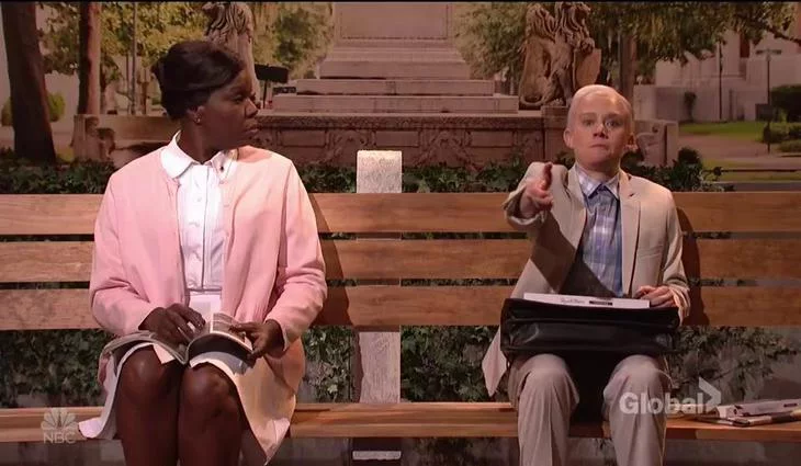 La popular actriz Kate McKinnon se transforma en Jeff Sessions en una parodia de la mítica película "Forest Gump" en 'SNL' ('Saturday Night Live').