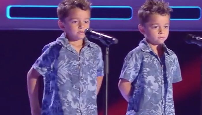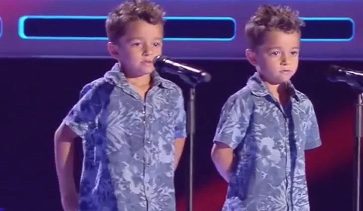 Rosario Flores, David Bisbal y Antonio Orozco son los coaches de la tercera edición de 'La Voz Kids' y pulsan el botón tras sentirse emocionados por la canción que interpretan los gemelos Antonio y Paco.