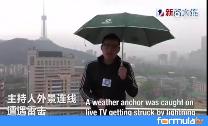 Un reportero chino es alcanzado por un rayo en directo mientras informaba sobre las fuertes tormentas