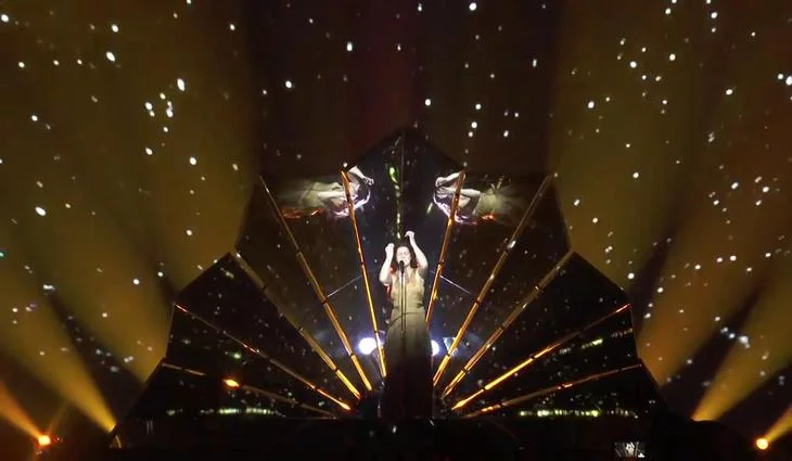 Así ha sido el primer ensayo de Lucie Jones en la sexta jornada de ensayos sobre el escenario del Centro Internacional de Exposiciones de Kiev.