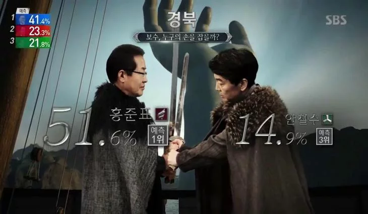 La parodia recoge a los candidatos como si fueran personajes de la serie, dando los porcentajes obtenidos en las elecciones como si de pruebas se tratasen.