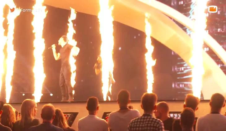 El representante israelí se sube al escenario del Centro Internacional de Exposiciones de Kiev para ensayar su canción a pocas horas de la final del Festival de Eurovisión 2017.