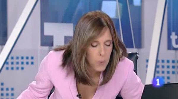 La presentadora del informativo estrella de La 1 fue sorprendida mientras le limpiaba el polvo a la mesa del 'Telediario'.