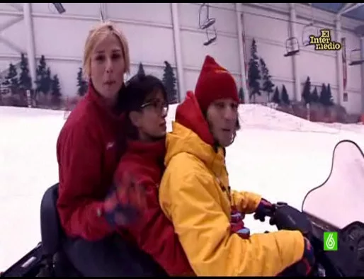 Thais Villas se lleva a la cantante Rosa López a esquiar al Centro Comercial Xanadú en Madrid en un nuevo "Yo te llevo" de 'El intermedio'.