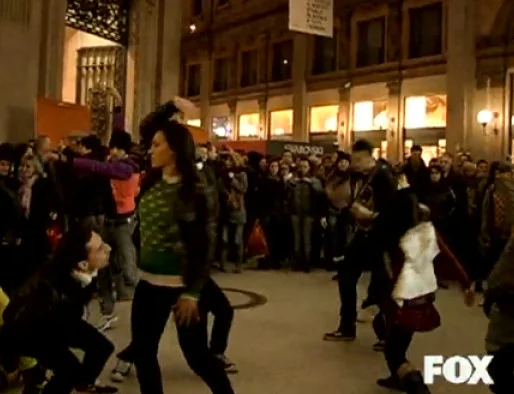 Con esta curiosa y multitudinaria coreografía en un centro comercial promociona FOX el estreno de 'Glee' en Italia.