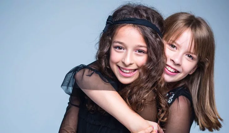 Las pequeñas Irina Brodic y Jana Paunovic cantan "Ceo svet je nas" en el escenario de Eurovisión Junior 2017.