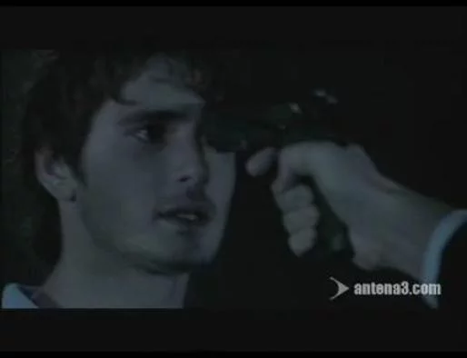 Jacques Noiret (Carlos Leal) amenaza de muerte a los familiares de Marcos (Martín Rivas), Iván (Yon González), Vicky (Elena Furiase) y Roque (Daniel Retuerta) mientras les apunta con una pistola tras la muerte de Carol (Ana de Armas).