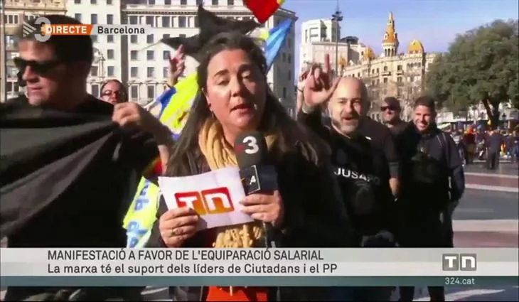 La reportera se encontraba informando desde Barcelona a causa de una manifestación que pedía la igualdad salarial con respecto a los Mossos.