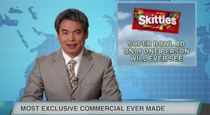 El anuncio de Skittles, emitido durante la Super Bowl 2018, se promocionaba como el "más exclusivo del mundo" pues solo se mostraría a una persona ficticia, Marcos Menéndez.