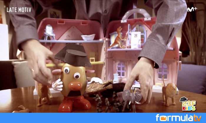 A modo de explicación para su hija de cinco años, el presentador utilizó varios juguetes para hacer una sencilla representación de lo ocurrido hace treinta y siete años, con Tejero representado por el "señor Potato".
