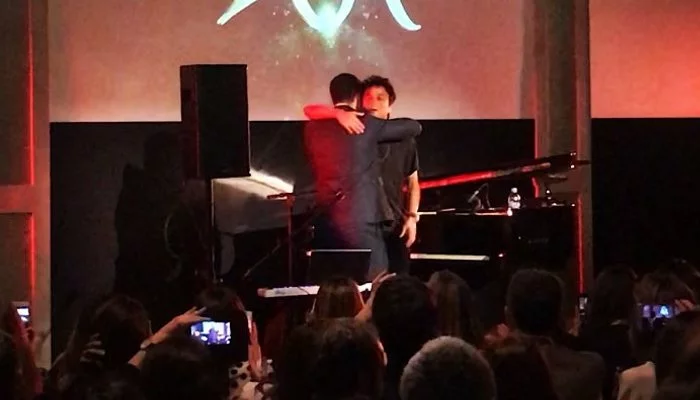 El cantante británico hizo un concierto el 19 de abril en el Casino de Madrid al que acudió el representante de España en Eurovisión 2018. Juntos, uno al piano y el otro a la voz, interpretaron "Don't Stop The Music".