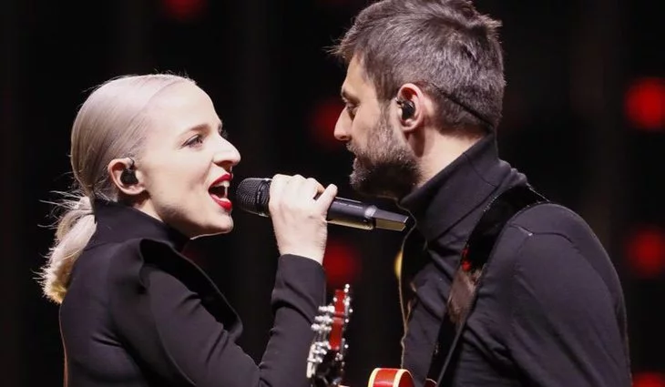 Los representantes de Francia en el Festival de la Canción de Eurovisión 2018 cantan "Mercy" sobre el escenario del Altice Arena de Lisboa.