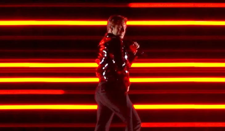 Benjamin Ingrosso sube al escenario de Eurovisión 2018 su propia estructura luminosa para la puesta en escena de "Dance You Off".