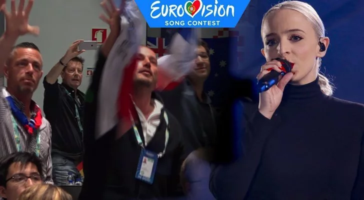La prensa acreditada visualiza la actuación de "Mercy", canción con la que el dúo Madame Monsieur trata de llevarse la victoria para Francia en Eurovisión 2018.