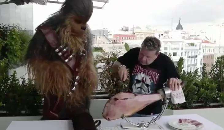 Para Chicote cortar jamón es algo de vital importancia, así que le enseña la técnica perfecta a Chewbacca.