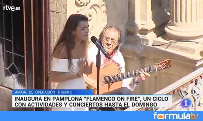 La ganadora de 'OT 2017' participó en la apertura del festival de flamenco de Pamplona, Flamenco On Fire, cantando desde el balcón del Ayuntamiento de la ciudad.