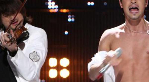 Dima Bilan canta "Believe" en Eurovisión, canción ganadora del Festival de 2008.