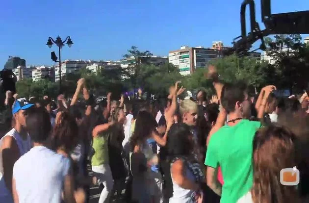 Imágenes exclusivas del flashmob de 'Fama Revolution' que realizaron ex concursantes y aspirantes a entrar en el concurso junto a la plaza de toros de las Ventas de Madrid