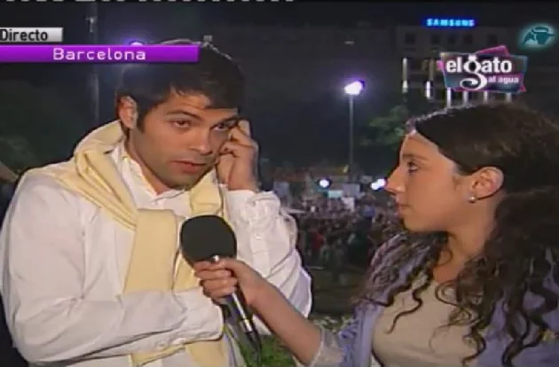 'El gato al agua' se trasladó hasta Barcelona para mostrar una de las Acampadas que están teniendo lugar por toda España dentro del movimiento Democracia Real Ya. Durante una de las conexiones, la reportera entrevista a un joven que da una mala imagen sobre los manifestantes, ante lo cual los asistentes les increpan y avisan de que la entrevista "es un montaje".
