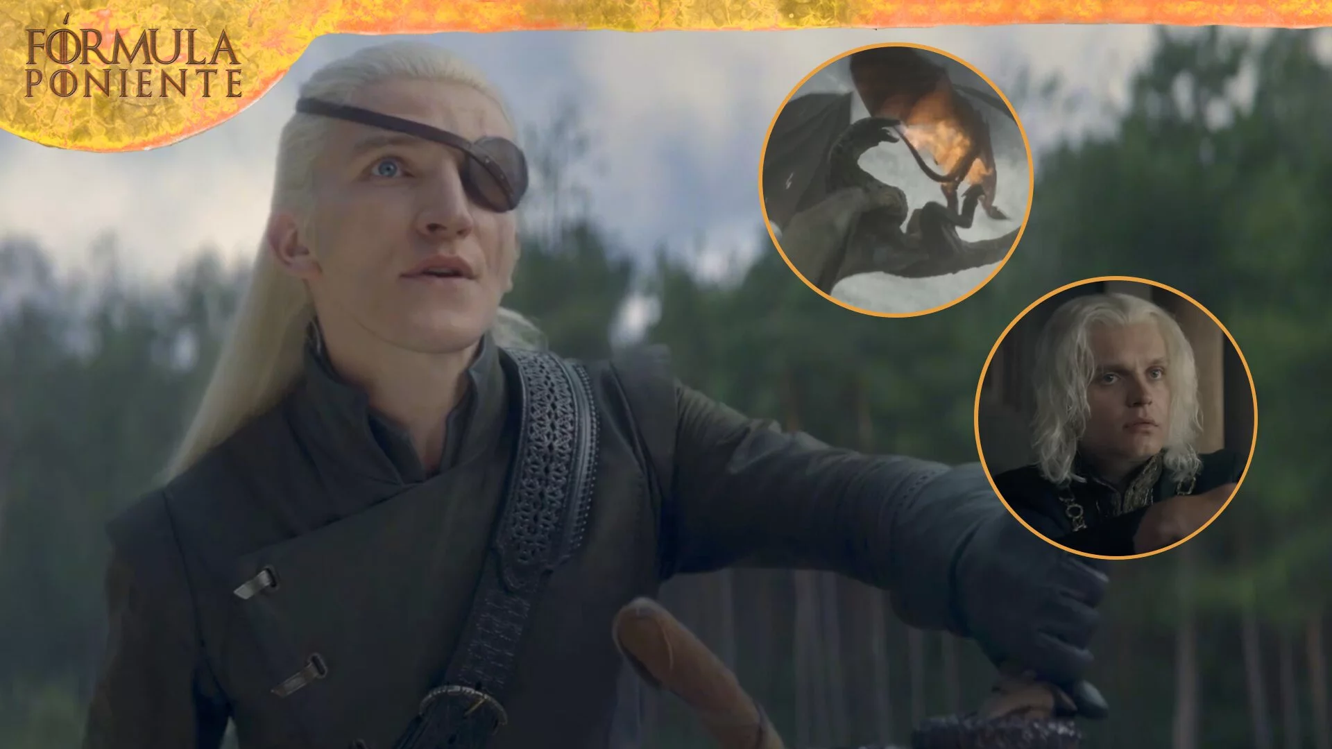 De ahí saltamos, como no podía ser de otra manera, al choque que manifiesta mejor que nunca el nombre de esta guerra, la Danza de los Dragones, ya que Rhaenys, Aegon y Aemond han librado un brutal y sobrecogedor enfrentamiento a lomos de Meleys, Fuegosol y Vhagar. ¿Cuáles serán las consecuencias de ese combate? ¿Qué ha pasado realmente con el monarca de los Verdes?