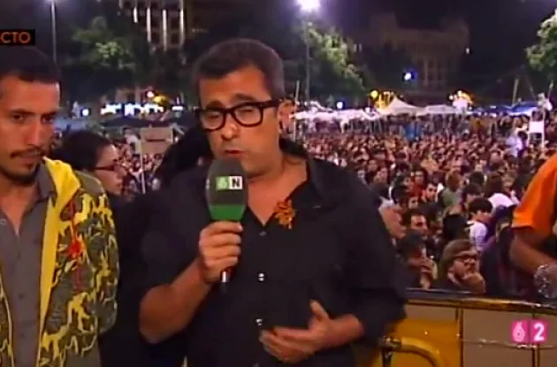 El showman de laSexta se convirtió en un improvisado reportero desde la acampada en Barcelona tras el brutal desalojo de la mañana.