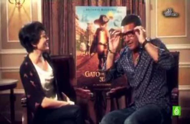 El actor está promocionando la película "El gato con botas" en la que dobla al protagonista.