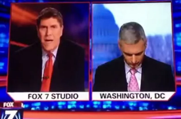 El reportero Doug Luzader, del canal Fox, dormido en una conexión en directo
