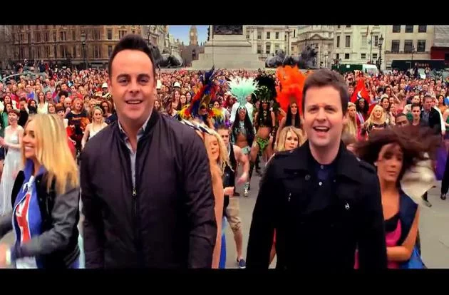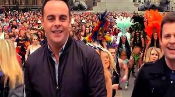 Los presentadores de 'Briatin's Got Talent', Ant & Dec, participan en un flashmob en la icónica Trafalgar Square de Londres para promocionar la sexta temporada del programa.