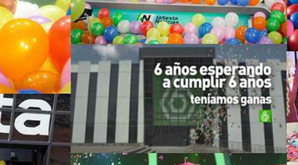 laSexta celebra el aniversario que mejor va con su nombre con un vídeo en el que participan muchas de sus caras más conocidas bajo el lema "6 años esperando a cumplir 6 años. Teníamos ganas". En él vemos a presentadores como Eva Hache y al equipo de 'laSexta Noticias' intentando llevar a cabo su trabajo en un set inundado de globos; al nuevo fichaje de laSexta Pedro García Aguado inundado de confeti; a Nuria Roca en un plató muy festivo; a Jordi Évole intentando poner en marcha su coche; a Wyoming y a Sandra Sabatés bajo una lluvia de serpentinas; y a Antonio G. Ferreras, director del canal y conductor de 'Al rojo vivo'.