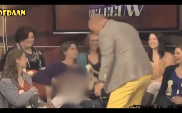 El presentador Paul de Leeuw mama del pecho de una de sus invitadas en directo