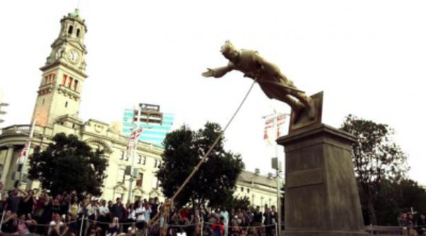 Un canal neozelandés ha promocionado la nueva temporada de 'Juego de Tronos' con una original campaña. Cada vez que recibían tuits con el hastag #bringdowntheking, una estatua de Joffrey Baratheon, situada en plena calle, estaba más cerca de caer.