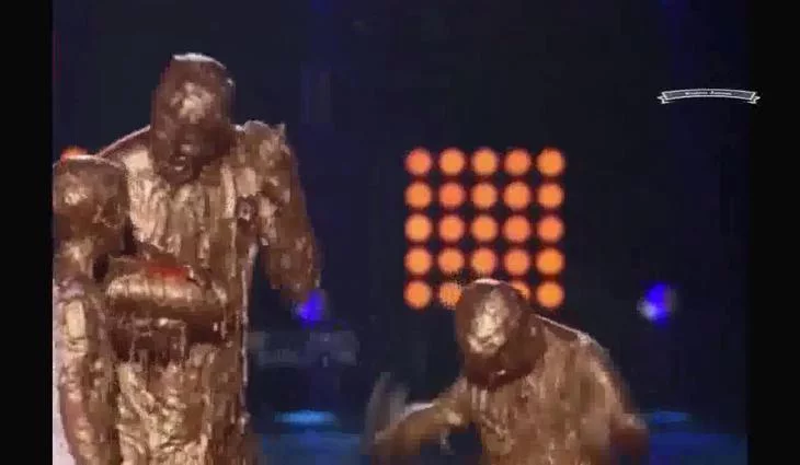 David Beckham, acompañado por sus hijos Romeo y Cruz, fue atacado con el tradicional moco de los premios Nickelodeon, aunque en esta ocasión en color dorado.