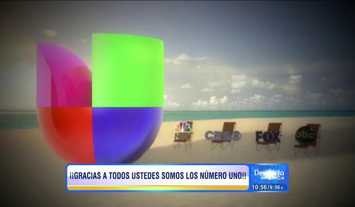 Con su logo tapando en la playa a ABC, FOX, NBC o CBS. Así presume Univision de haber sido la cadena más vista en julio en Estados Unidos en cualquier idioma. Los latinos conquistan USA.