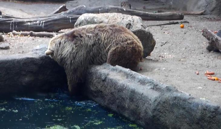 Un oso del zoo de Budapest rescata a un cuervo herido que había quedado atrapado en el agua.