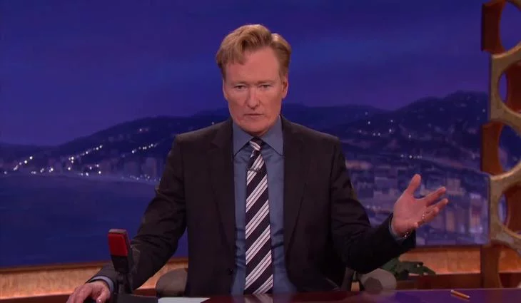 El presentador se encontraba con Will Arnett y Andy Richter en su pograma 'Conan', cuando la noticia les sorprendió en plena entrevista.