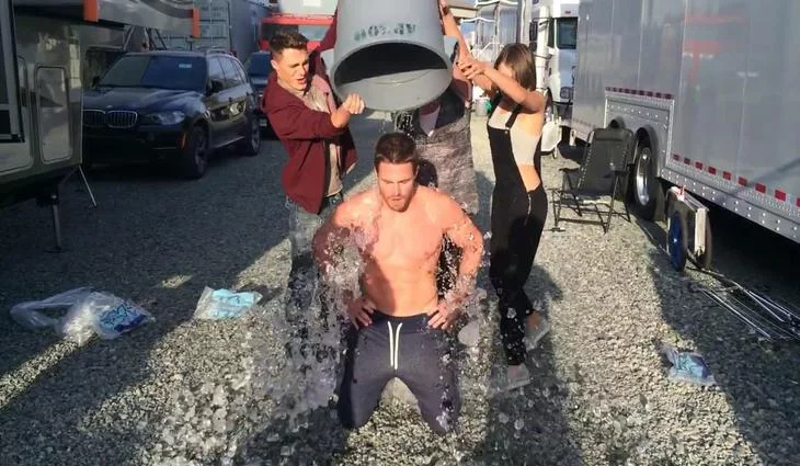 El protagonista de la serie 'Arrow' no duda en apuntarse a la moda del reto del cubo de agua helada.