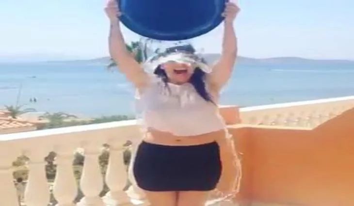 La cantante se moja por la causa del ELA y cumple el reto del cubo de agua helada.