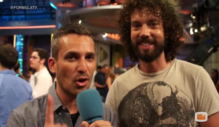 Juan Ibáñez y Damián Mollá agarran el micro de FormulaTV.com y se entrevistan entre ellos durante la presentación de la novena temporada de 'El hormiguero', en Antena 3.