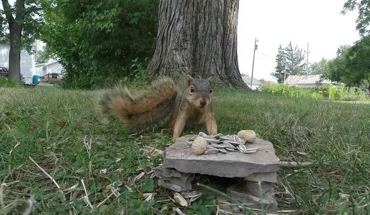 Una cámara GoPro intentaba grabar a una inocente y adorable ardilla comiendo, aunque al final la ardilla confundió con la cámara con otra cosa.