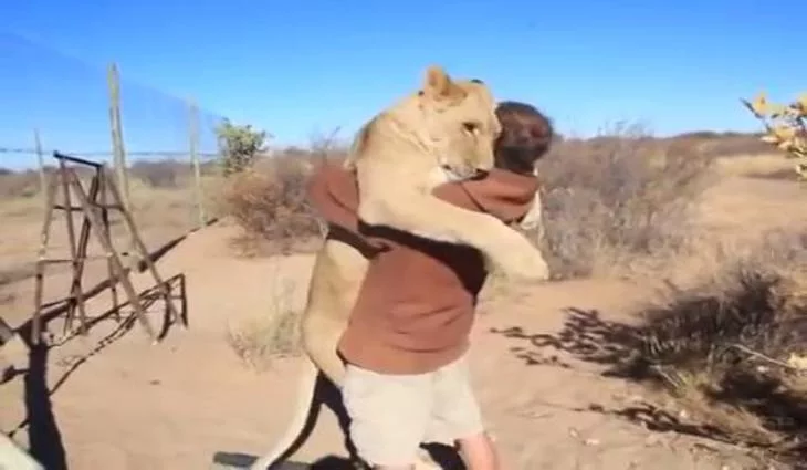 Un vídeo del amor que pueden sentir los animales por los humanos, aunque sean animales salvajes y peligrosos. Esta leona llevaba seis meses sin ver a Valentin Grüner, su cuidador, y se lanza a sus brazos en cuanto le ve.