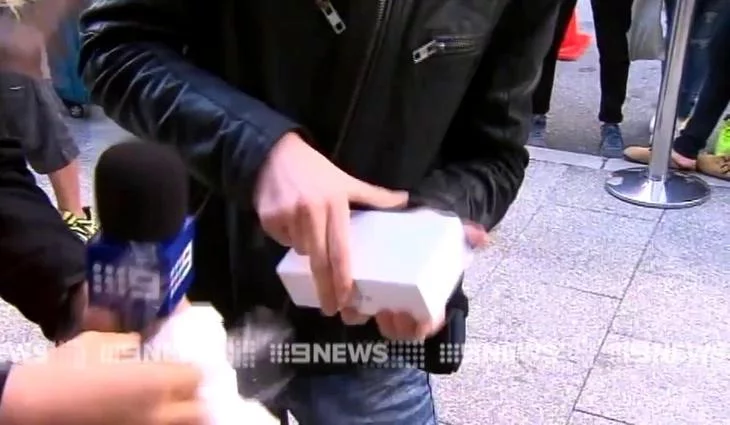 Un joven australiano ha sido el afortunado primer poseedor de un iPhone 6 en el mundo (por la diferencia horaria). Desafortunadamente, cuando se disponía a abrirlo en directo en el programa matinal de '9 News', el iPhone 6 se le ha caído al suelo.