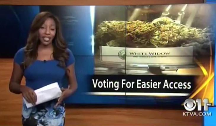 Una presentadora de una televisión local de KTVA de Alaska dimite en directo tras presentar un reportaje sobre la legalización de la marihuana en el estado donde aparecía el club de marihuana que ella misma regenta: "Fuck it! I quit!".
