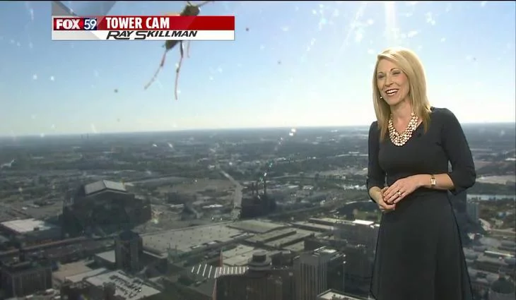 La meteoróloga Jennifer Ketchmark se lleva un susto mientras está dando la predicción del tiempo en Fox News cuando una avispa pasa por delante de la cámara.