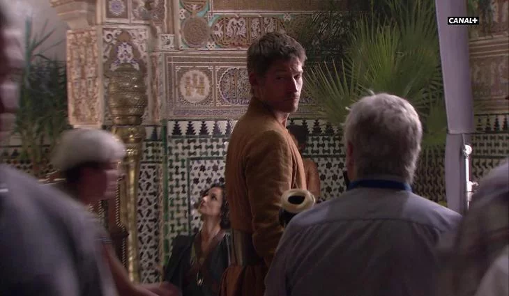 Imágenes de la grabación en Sevilla de la quinta temporada de 'Juego de tronos' ('Game of Thrones') con Indira Varma (Ellaria Sand), Alexander Siddig (Doran Martell) y Nikolaj Coster-Waldau (Jamie Lannister).
