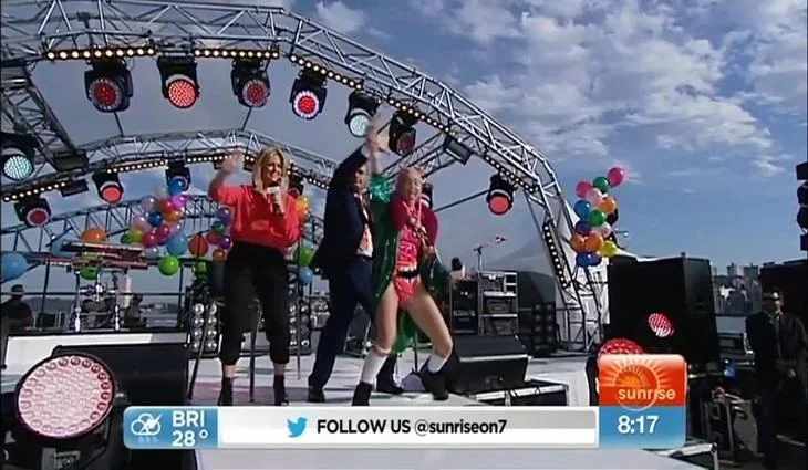 La cantante deja a un lado el twerking y muestra como se baila su nuevo paso: el nae nae, en un programa de televisión.