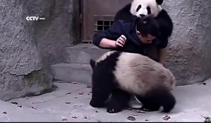 La televisión china ha captado los apuros de un cuidador para que dos pandas se tomaran sus medicamentos en un zoo del país.