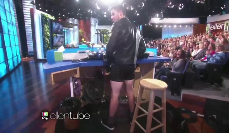 Nick Jonas quedándose en calzoncillos en el programa de Ellen Degeneres