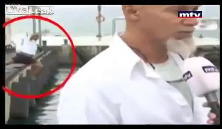 Un hombre se cae al agua en medio de un directo en un informativo
